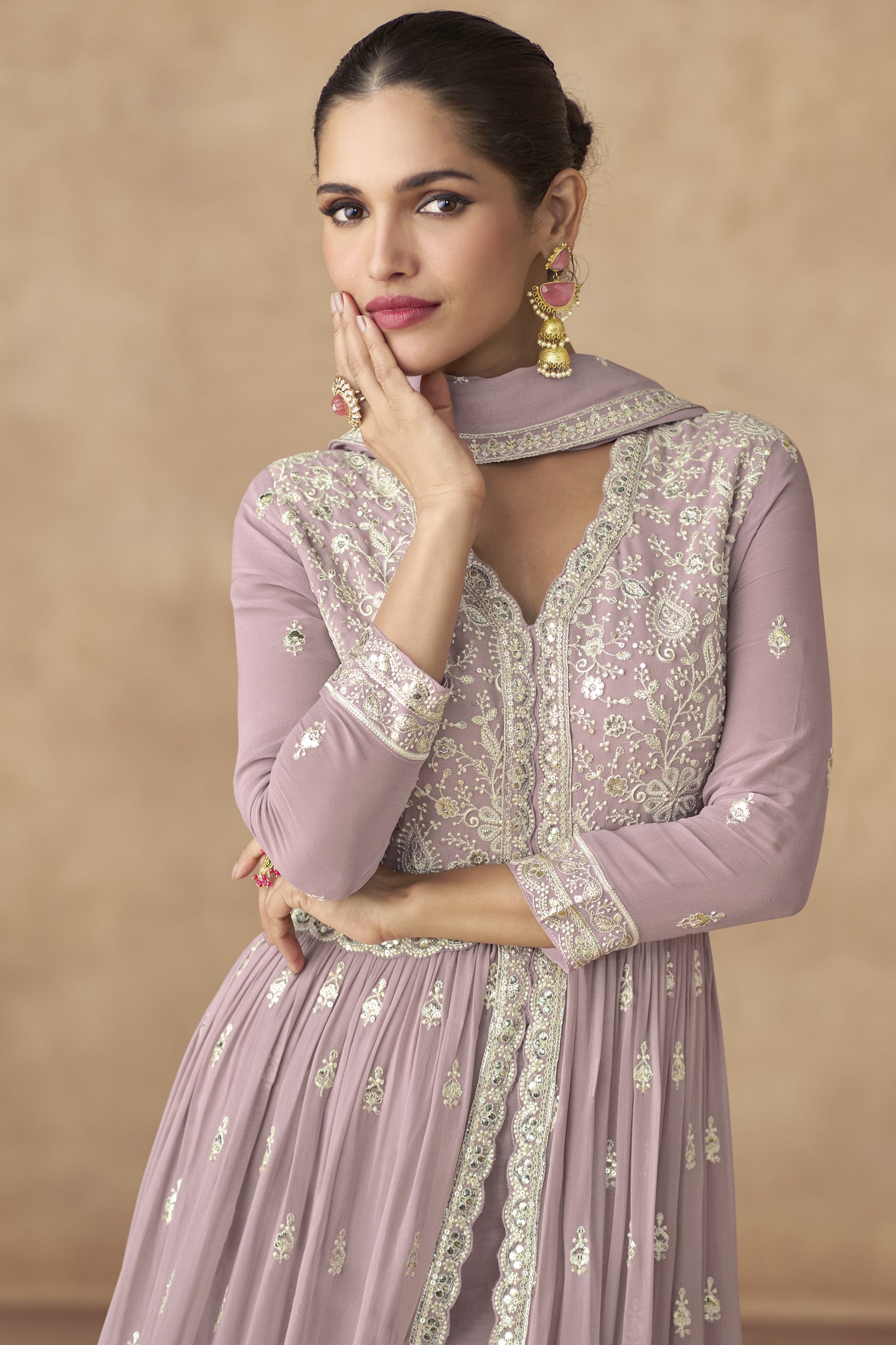 Discover the perfect ensemble for the big day. This Light Purple Georgette Long Anarkali Suit is an exquisite choice, especially suitable as a stunning **bridesmaid gown India** for any significant **Marriage** celebration. Its luxurious georgette fabric drapes beautifully, complemented by exquisite embroidery work that adds timeless elegance. The floor-length design creates a graceful silhouette, making this must-have piece perfect for owning the spotlight at any festive or wedding event.
