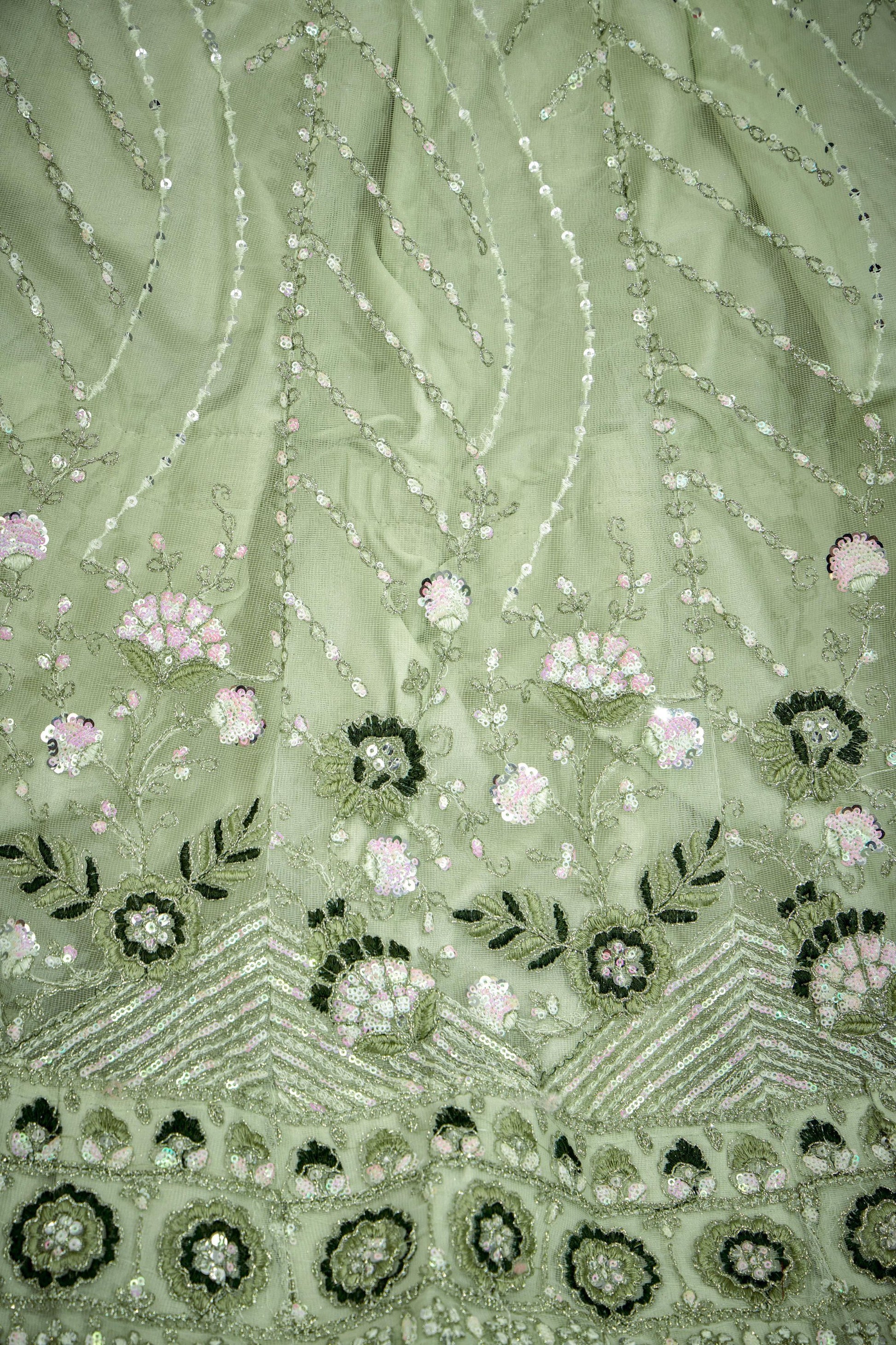 Light Pista Net Lehenga Choli For Indian Festival & Weddings - Thread Embroidery Work, Sequence Embroidery Work